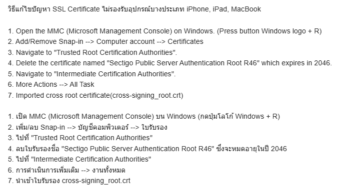 วิธีแก้ไขปัญหา SSL Certificate ไม่รองรับอุปกรณ์บางประเภท iPhone, iPad, MacBook